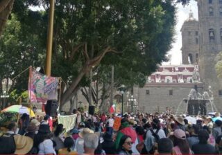 Sexta marcha ciudadana en Puebla rechaza el cablebús de Armenta