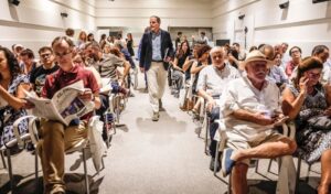 La periodista de este diario Ana Fuentes preguntó al director de EL PAÍS, en el cargo desde hace tres meses, si cuando cambia un director cambia también la línea editorial. Martínez Ahrens respondió que la línea editorial de EL PAÍS está establecida desde su fundación. “Cambian sensibilidades, intereses, y yo tengo algunos a los que presto más atención”. Fuentes también le recordó su fama de exigente. “Hay famas peores”, dijo Martínez Ahrens. “Esta no es una redacción fácil. Solemos ser muy autocríticos. Nos duran muy poco los éxitos y nos fustigamos mucho. Mejor ser exigente y tener la luz encendida a cualquier hora para cumplir nuestro deber, que es informar”.