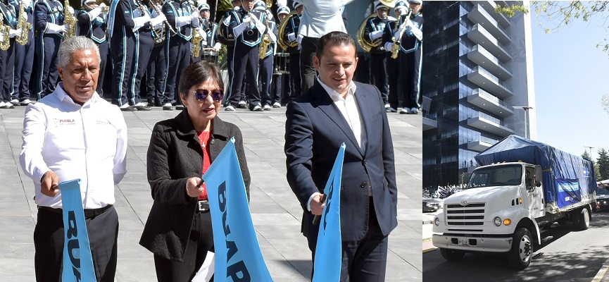La rectora de la BUAP, Lilia Cedillo Ramírez, dio el banderazo de salida a dos camiones con víveres donados por la comunidad universitaria: un total de 14 toneladas, de las cuales 10 serán depositadas en el Complejo Regional Norte y cuatro en el Complejo Regional Nororiental, donde los estudiantes organizarán brigadas para entregar estos productos a las familias afectadas por las intensas lluvias en esa región del estado.