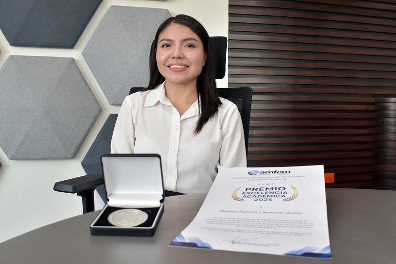 Paulina Patricia Chamorro Juárez, pasante de la Facultad de Medicina de la BUAP, fue reconocida con el Premio a la Excelencia Académica 2025 otorgado por la Asociación Mexicana de Facultades y Escuelas de Medicina (AMFEM), organismo que reconoce a los promedios más altos de las instituciones afiliadas. En esta edición fueron premiados 103 estudiantes.